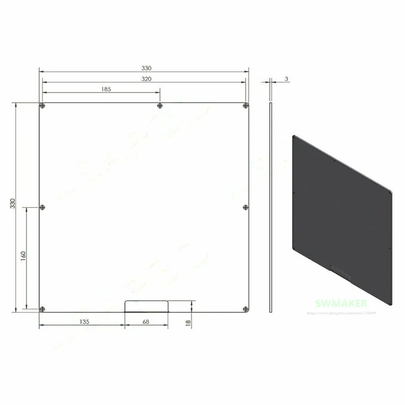 Related Product for SWMAKER MK2A Aluminum Build Plate Heated Bed 330x330mm for 3D Printer