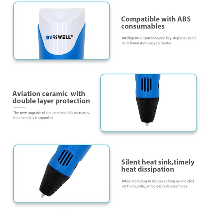 .image of Myriwell 3D Pen Creative 3D Printing Pens Intelligence Drawing 3D Printer Pen with ABS Filament 3D